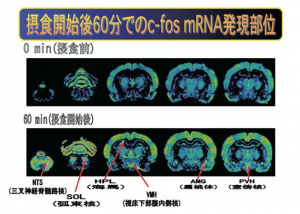 ③海馬(HPL):ゴーグル状の形(食後に強く出現)は記憶視床下部腹内側核(VMH):お腹イッパイ!を感じる満腹中枢に関わる領域。