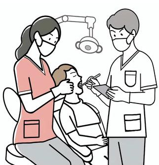 歯科診療は、歯科医師を中心とした「チーム医療」で行われています。歯科衛生士は、歯科医師の指示のもとで診療を補助するだけでなく、歯科治療の一部を担当するなど協働で治療にあたっています。